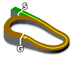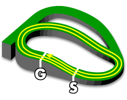 外回りの為、必ずしも内を通ったほうが有利というわけでない。
