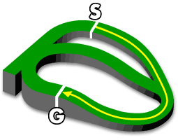 スタートから直後に坂があるが先行争いは激しくなり、ここでスタミナを使うと苦しいが、その後ペースをコントロースされやすく、先行馬で決まることが多い。