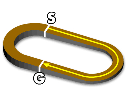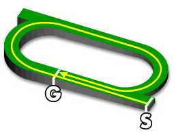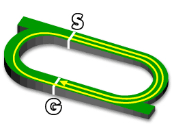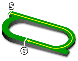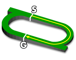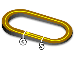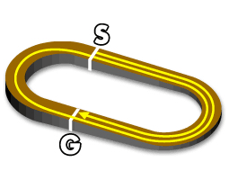・3~4角はスパイラルコーナと呼ばれるカーブになっており、スピードが落ちにくく、スピード決着になる。