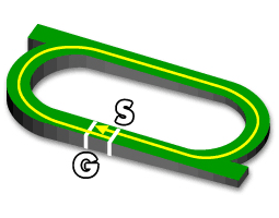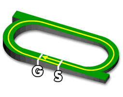 1角まで距離がありそれほど先行争いは激しくならなく、1コーナが急で縦長になりやすい。